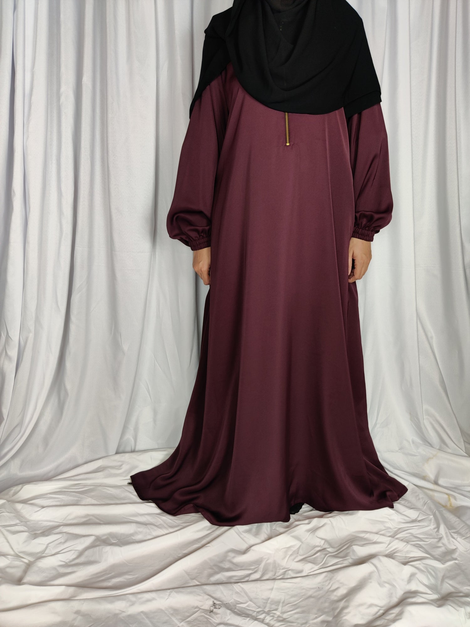 Loose fitted matte abaya with a nursing friendly 11.5 inch zipper, fitted...