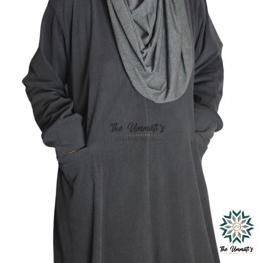 Hooded Corduroy Abaya - Dark Gray